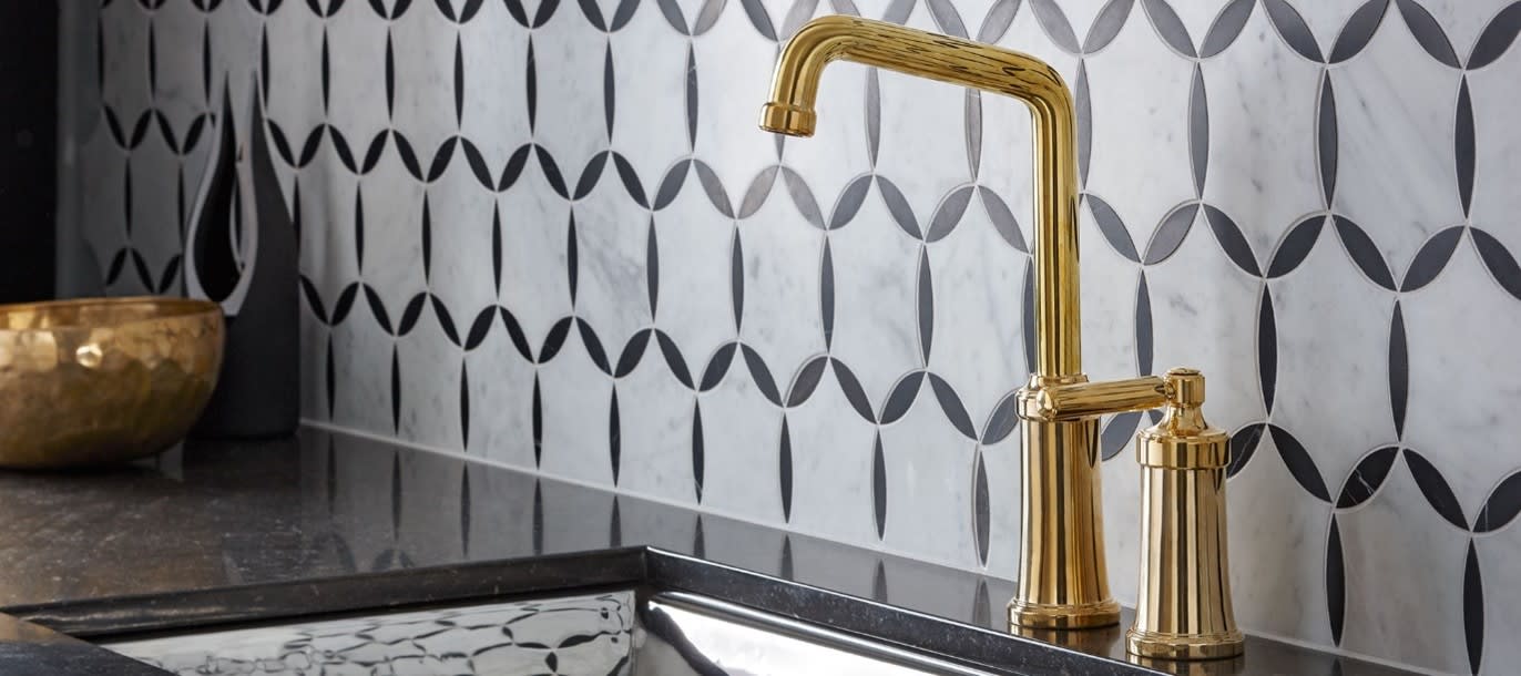 What’s old is new again with Kallista’s introduction of their Brushed French Gold finish. Warm-toned with a subtle matte texture, the offering adds a touch of luxury while being the brand’s first use of PVD (physical vapor deposition) technology. Shown on their Central Park West collection.