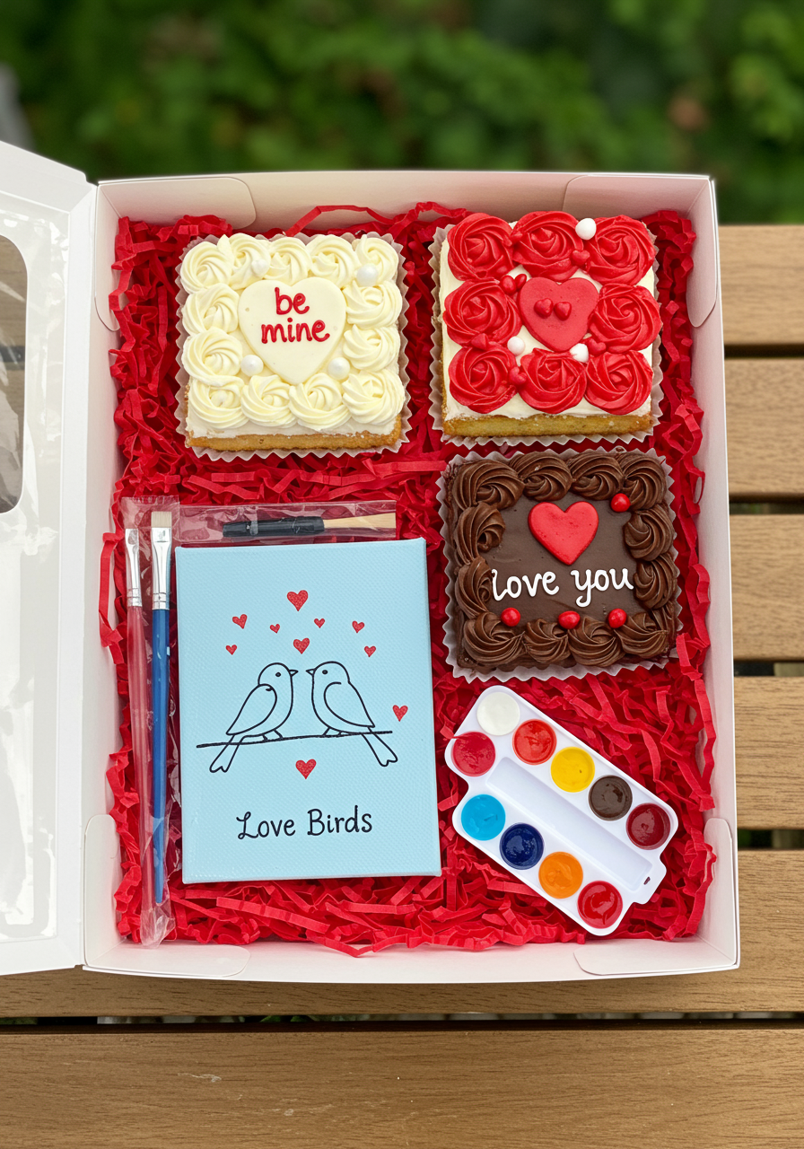 If you’re looking for a one-of-a-kind cake or dessert, you must contact Nubian Sugar. They offer the most innovative desserts in town. This holiday is no different! They are offering a selection of “Cake and Canvas” Dessert Boxes. You get a treat and a nice hand drawn pre-sketched canvas equipped with a watercolor paint kit to enjoy with your lucky loved one.