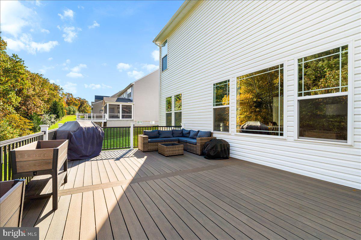 Rare opportunity in Tallyn Ridge to own a premium cul-de-sac lot offering unmatched privacy and wooded views from both the front porch and rear deck. Built by Drees Homes in 2022, this spacious 5BR/5BA , 5156 sq ft home blends luxury and functionality. The main level features a dramatic two-story foyer, a private office or library, and an open-concept kitchen with a massive island, gas cooktop, double ovens, sleek backsplash, and abundant cabinetry, making it a chef's dream. Enjoy your morning coffee on the front porch or the bright sunroom or on the deck overlooking the serene backyard. The kitchen flows seamlessly into a light-filled family room with a gas fireplace. A main-level bedroom , full bath and receiving room from the garage adds versatility. Upstairs, the expansive owner's suite offers a sitting area, dual walk-in closets, and a spa-inspired bath. A loft space outside the owners suite provides flexible living space for a craft area or another relaxation room. Bedrooms 3 and 4 each have private en-suite baths and walk-in closets. The walk-out lower level basement features a 5th bedroom, 5th bath, large recreation room, and storage. Located in the sought-after Oakdale School District, near parks, community pool, tennis courts, tot lots and short drive to downtown Frederick.
