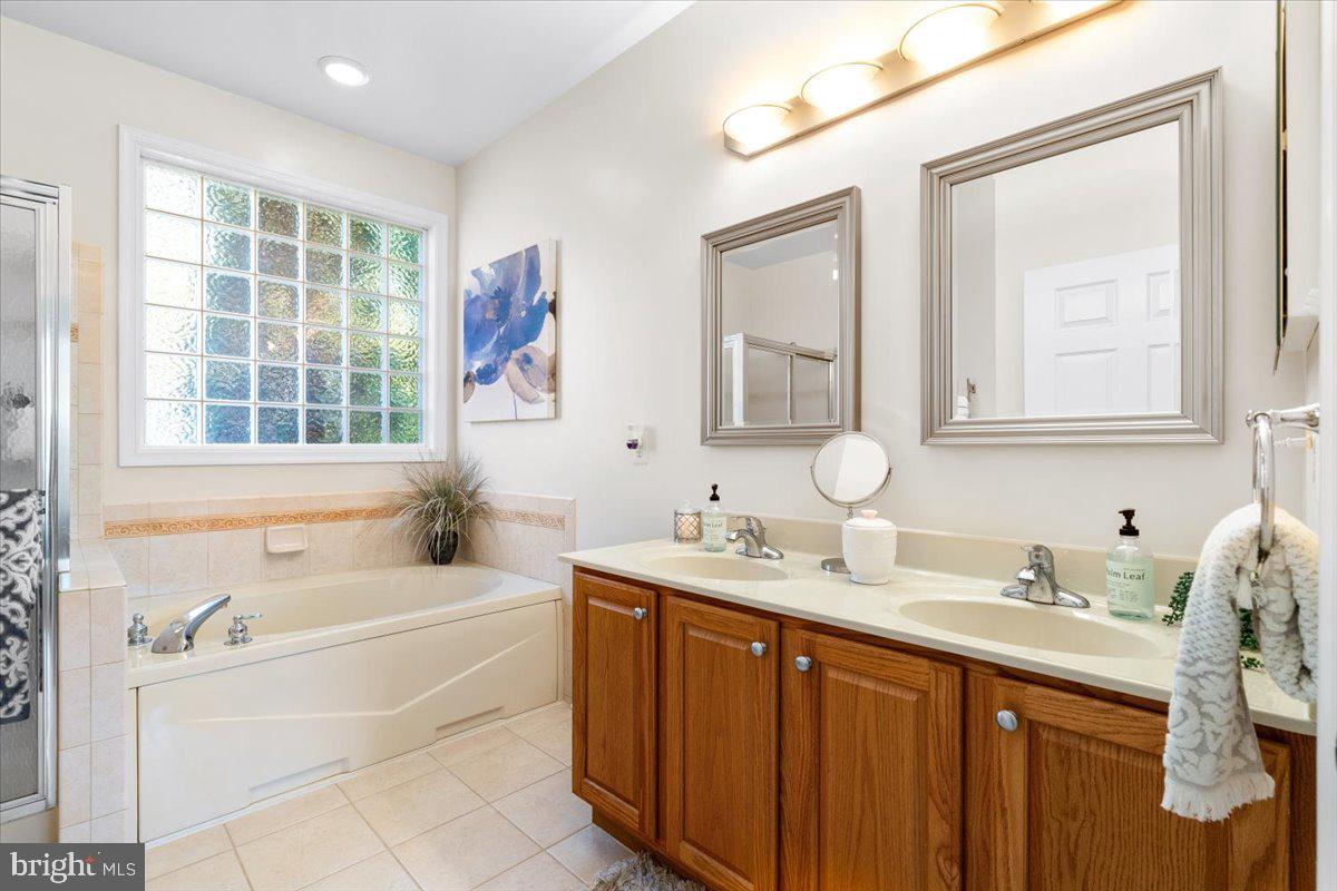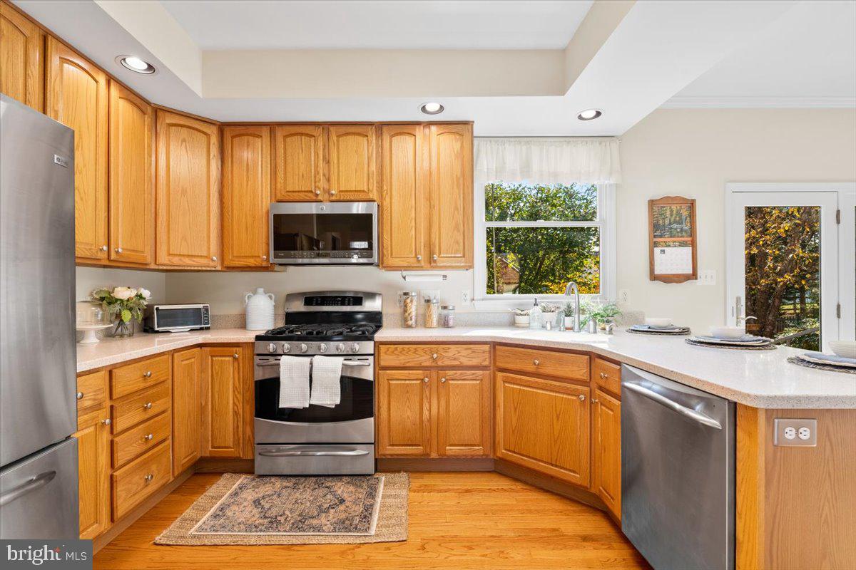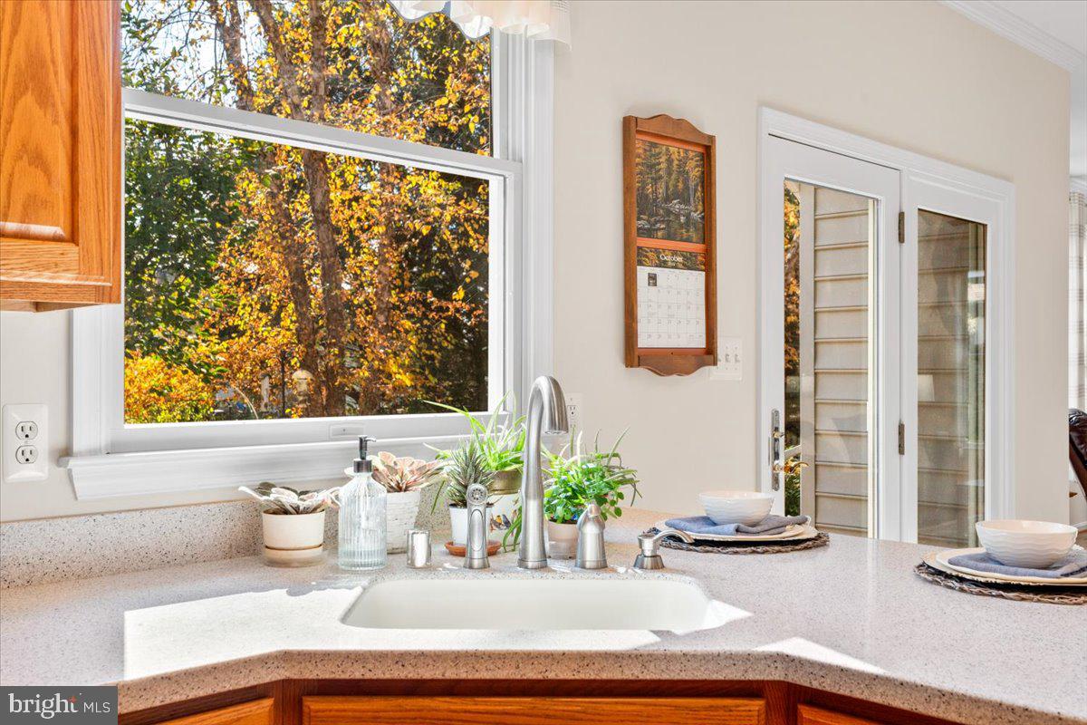 Check out this modern ranch-style home that sits on serene lot. A rare find with a main-level living layout that includes bump outs on each level, an open floor plan, 9 ft ceilings, and custom trim throughout. As you pull up to this elegant brick, Ausherman built home, you will notice that spacious lot that offers mature trees in a quiet neighborhood setting. You are greeted by hardwood floors that lead you into the main level that includes a large office and a formal dining room. As you move into the open concept kitchen you notice tons of cabinet space and a gorgeous view of the backyard. The kitchen flows to the family room including tall windows and a charming fireplace. Moving to the bedrooms on the main level you will notice wider hallways and doorways that were one of the many upgrades. The three large bedrooms are lead by the vast primary suite including walk-in closets and an on-suite bathroom with a double vanity, a soaking tub, and a fantastic shower. When entering the lower level, you will notice a great deal of natural light, a full bathroom and tons of storage. NEW HVAC Systems and an OVERSIZED GARAGE with built-in storage. To complete this beautiful home you will enjoy the tranquil backyard with extensive hardscaping, meticulously maintained gardens, and trees that create privacy in this neighborhood setting. This neighborhood offers great amenities, a non-passthrough street, and easy access to shopping, dining, and major commuter routes.