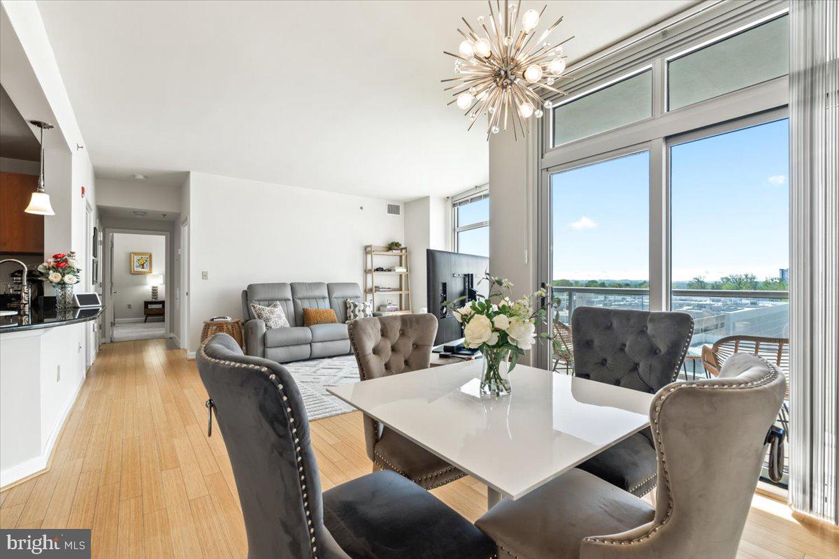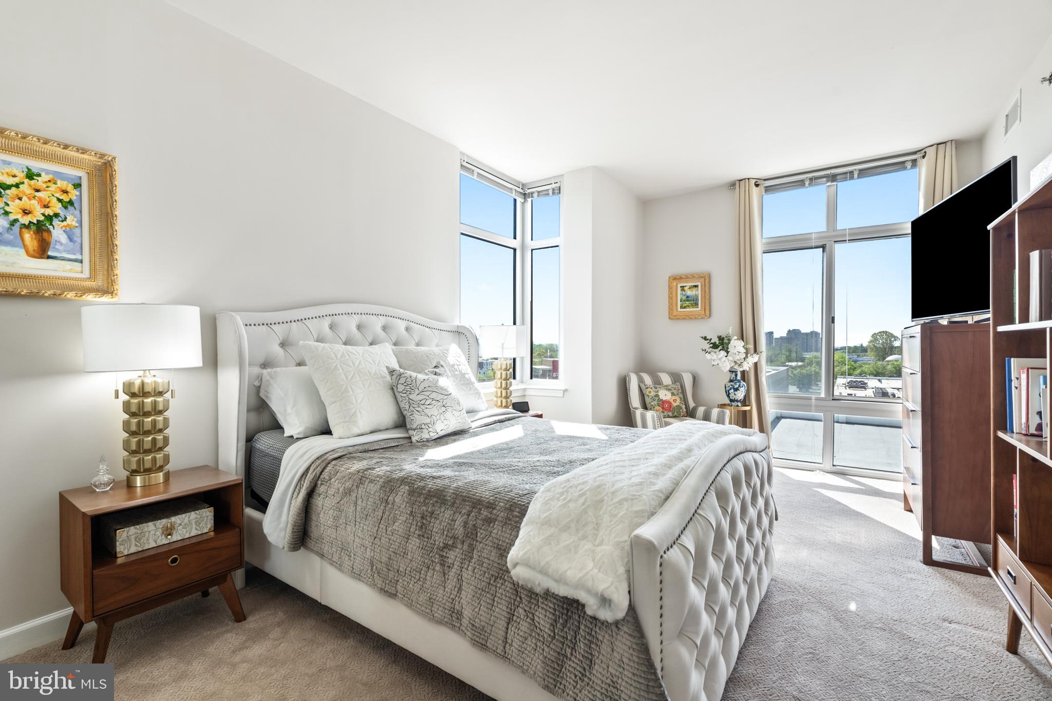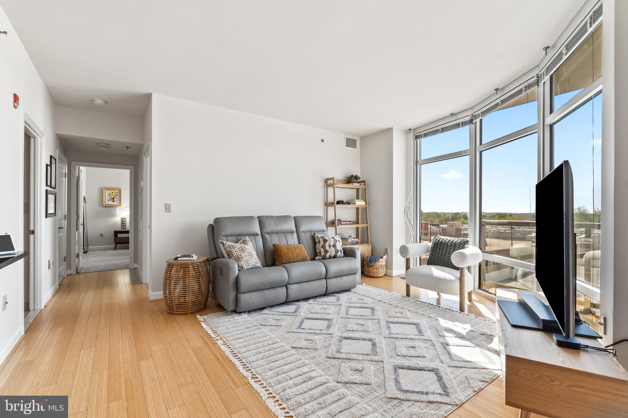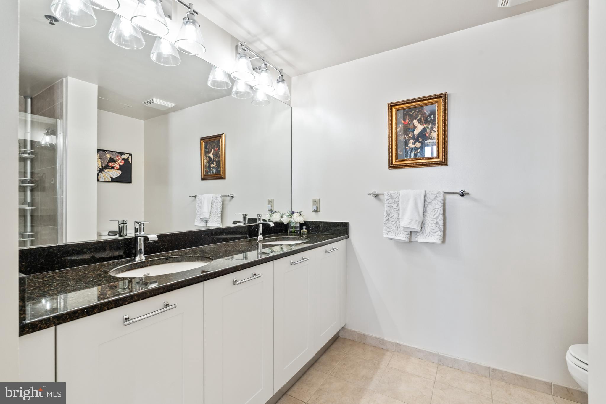 Experience luxury living in this spacious 2-bedroom, 2-bath condo in the heart of North Bethesda. With 1,421 square feet, this unit features 9-foot ceilings, a bright open floor plan, and floor-to-ceiling windows that fill the space with natural light. The kitchen is appointed with granite countertops and smart appliances, seamlessly blending function and style. The primary bedroom offers a large walk-in closet and a double vanity ensuite with updated fixtures. Both bedrooms feature brand-new carpeting, and both bathrooms have been upgraded with modern hardware and lighting.