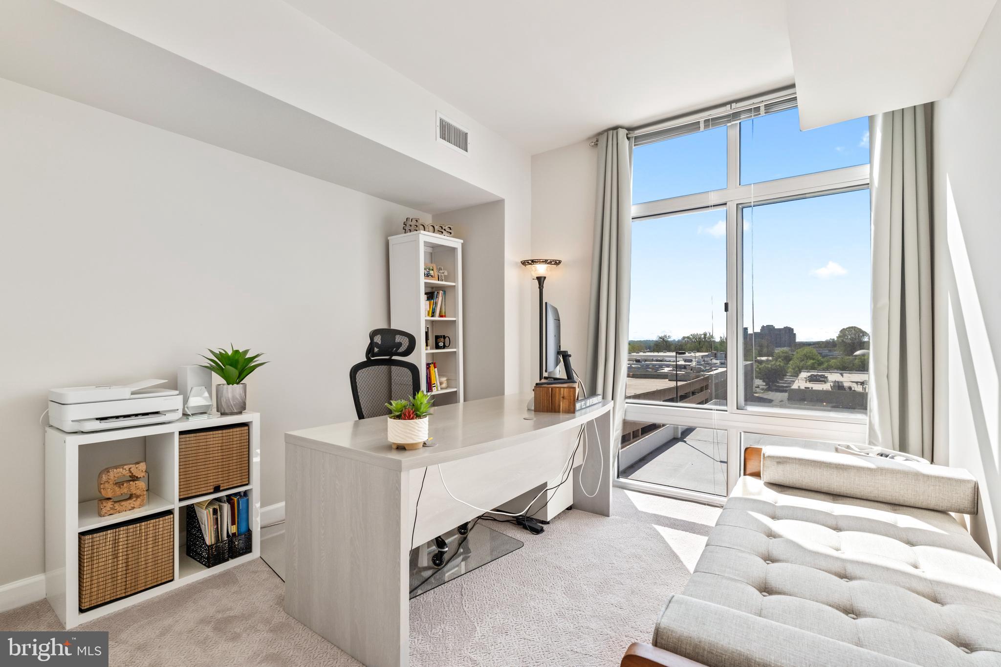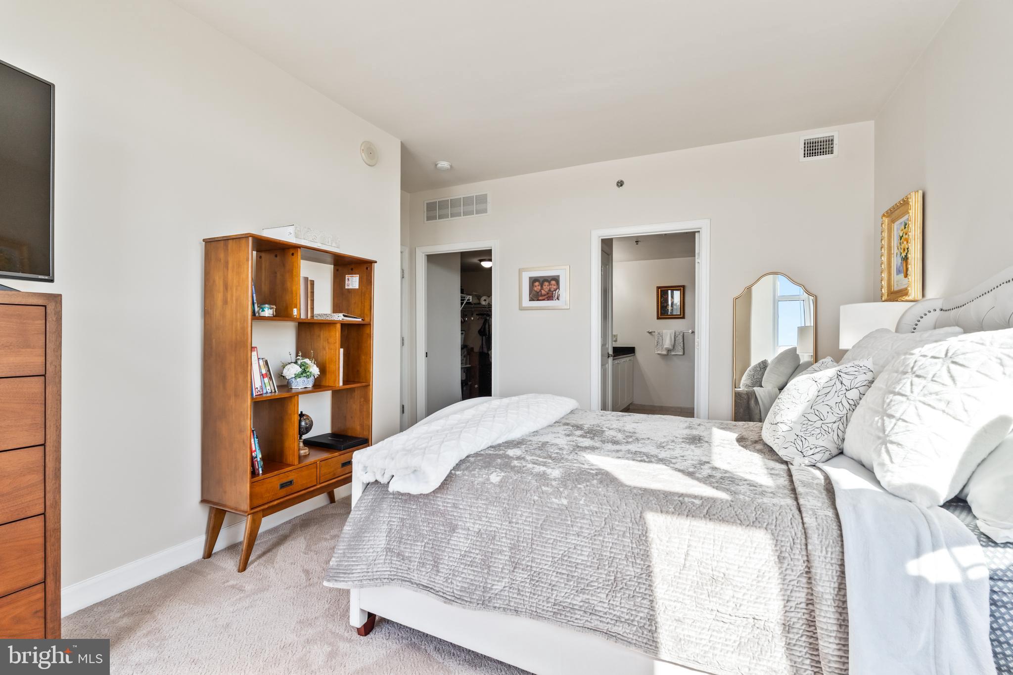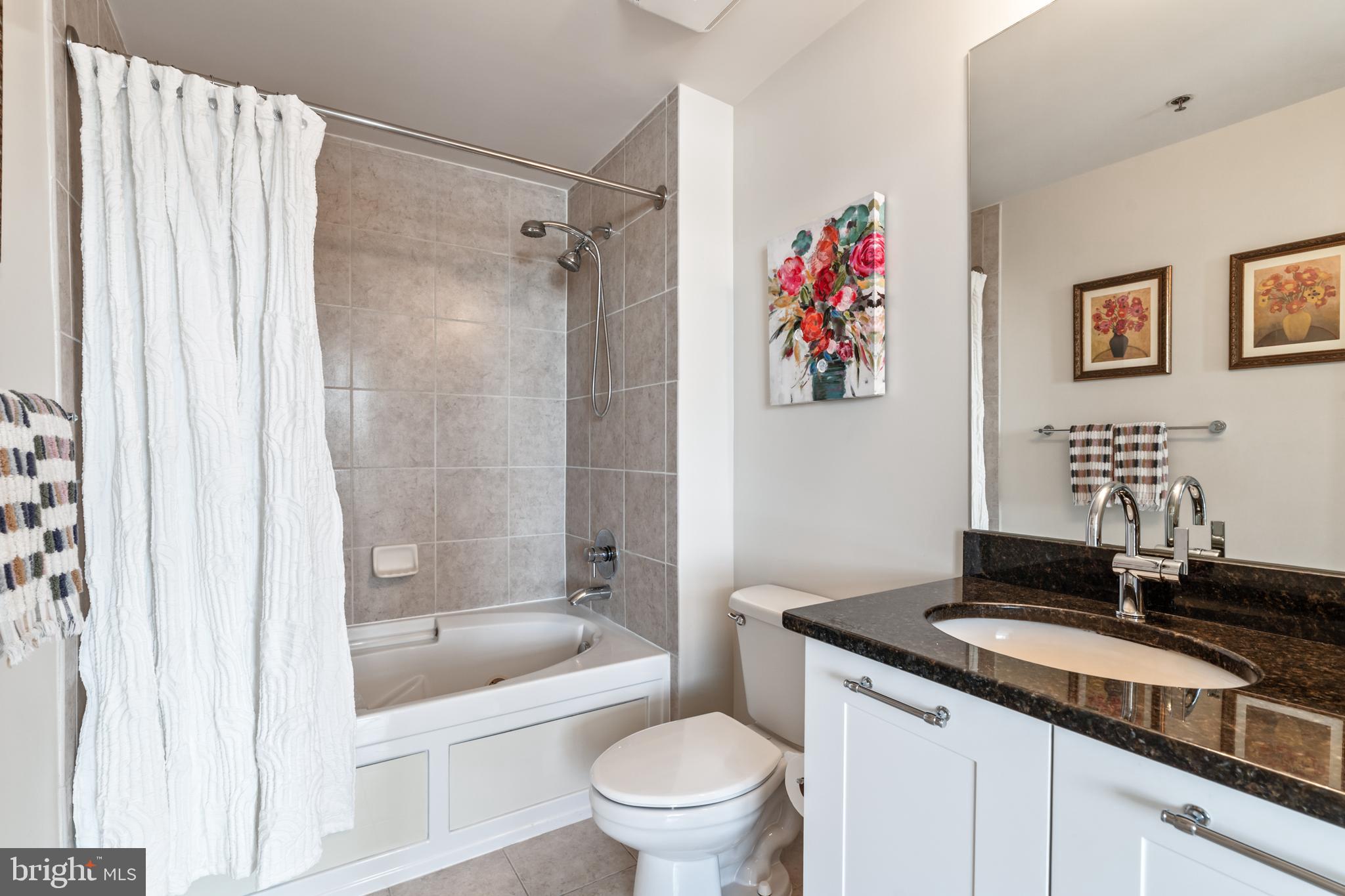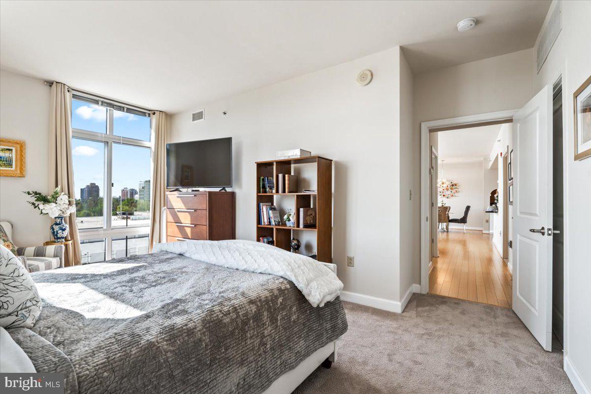 Experience luxury living in this spacious 2-bedroom, 2-bath condo in the heart of North Bethesda. With 1,421 square feet, this unit features 9-foot ceilings, a bright open floor plan, and floor-to-ceiling windows that fill the space with natural light. The kitchen is appointed with granite countertops and smart appliances, seamlessly blending function and style. The primary bedroom offers a large walk-in closet and a double vanity ensuite with updated fixtures. Both bedrooms feature brand-new carpeting, and both bathrooms have been upgraded with modern hardware and lighting.