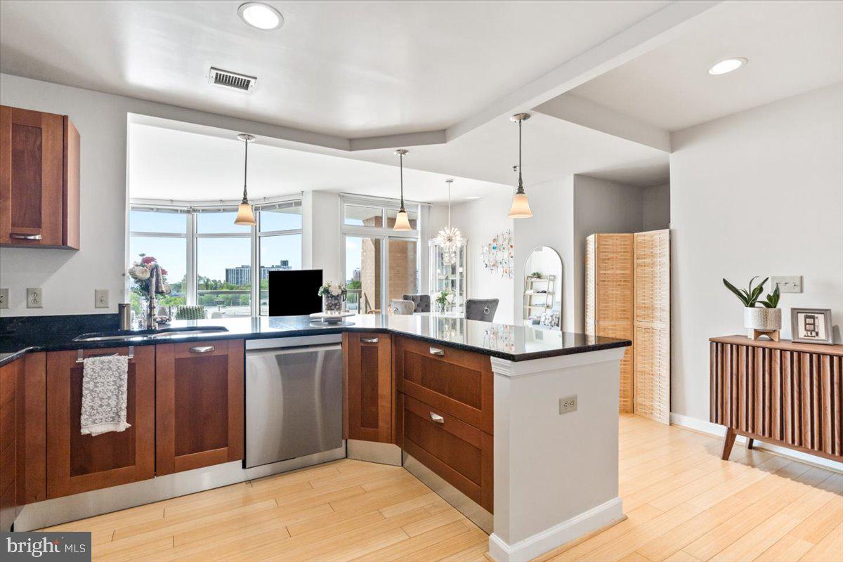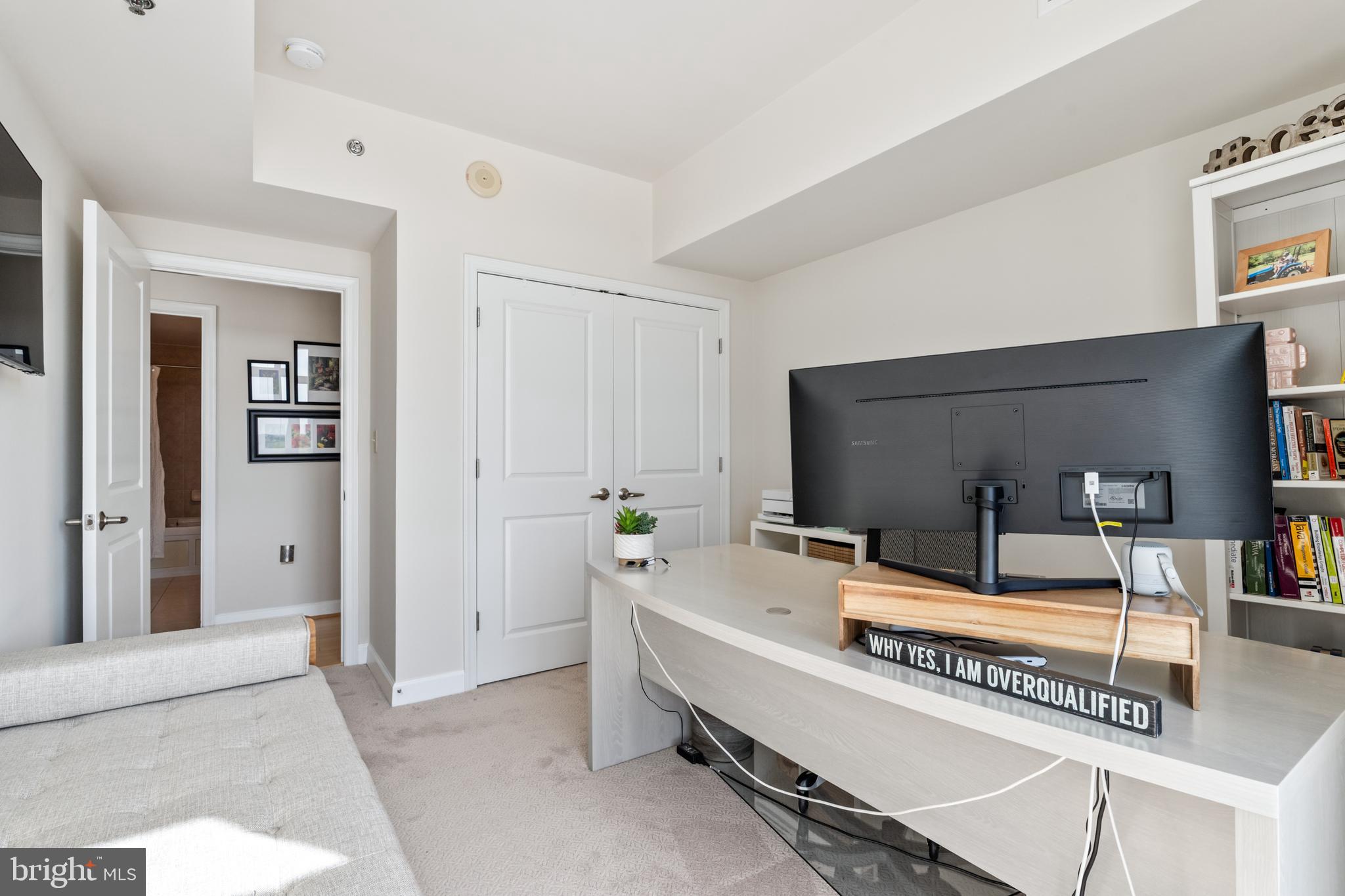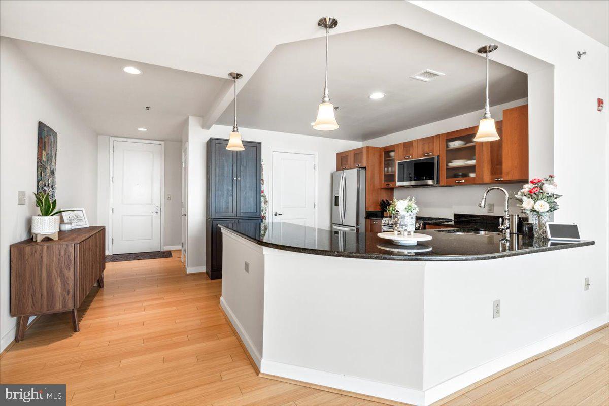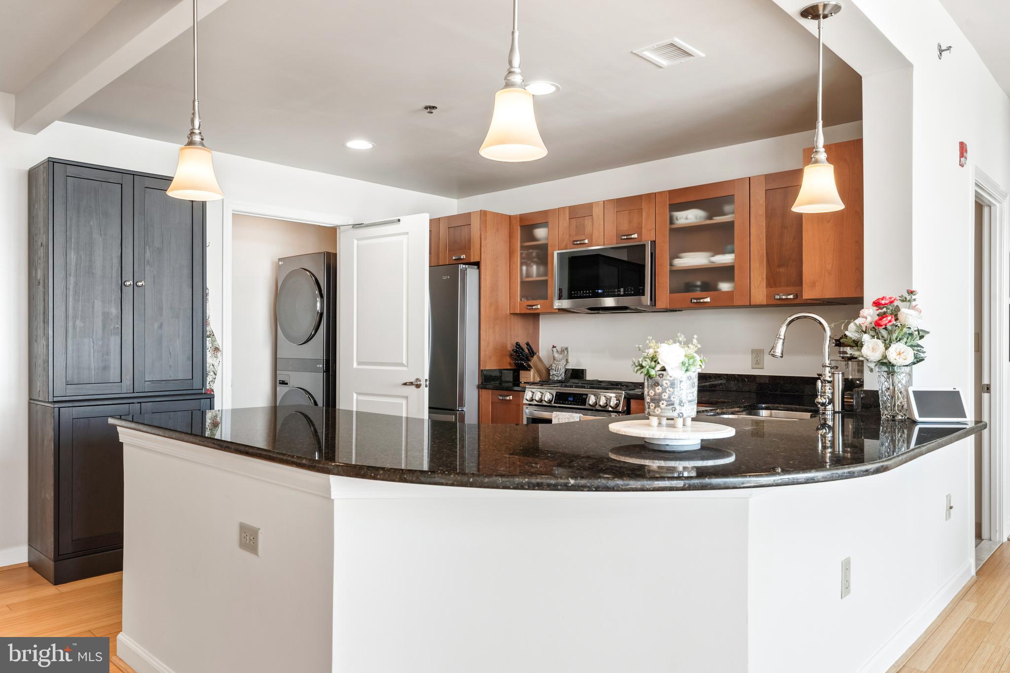 Experience luxury living in this spacious 2-bedroom, 2-bath condo in the heart of North Bethesda. With 1,421 square feet, this unit features 9-foot ceilings, a bright open floor plan, and floor-to-ceiling windows that fill the space with natural light. The kitchen is appointed with granite countertops and smart appliances, seamlessly blending function and style. The primary bedroom offers a large walk-in closet and a double vanity ensuite with updated fixtures. Both bedrooms feature brand-new carpeting, and both bathrooms have been upgraded with modern hardware and lighting.